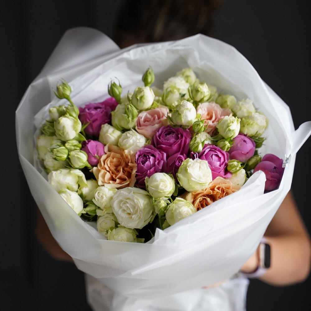 Кустовые розы, Лизиантусы, Пионы, Розы, Хризантемы
