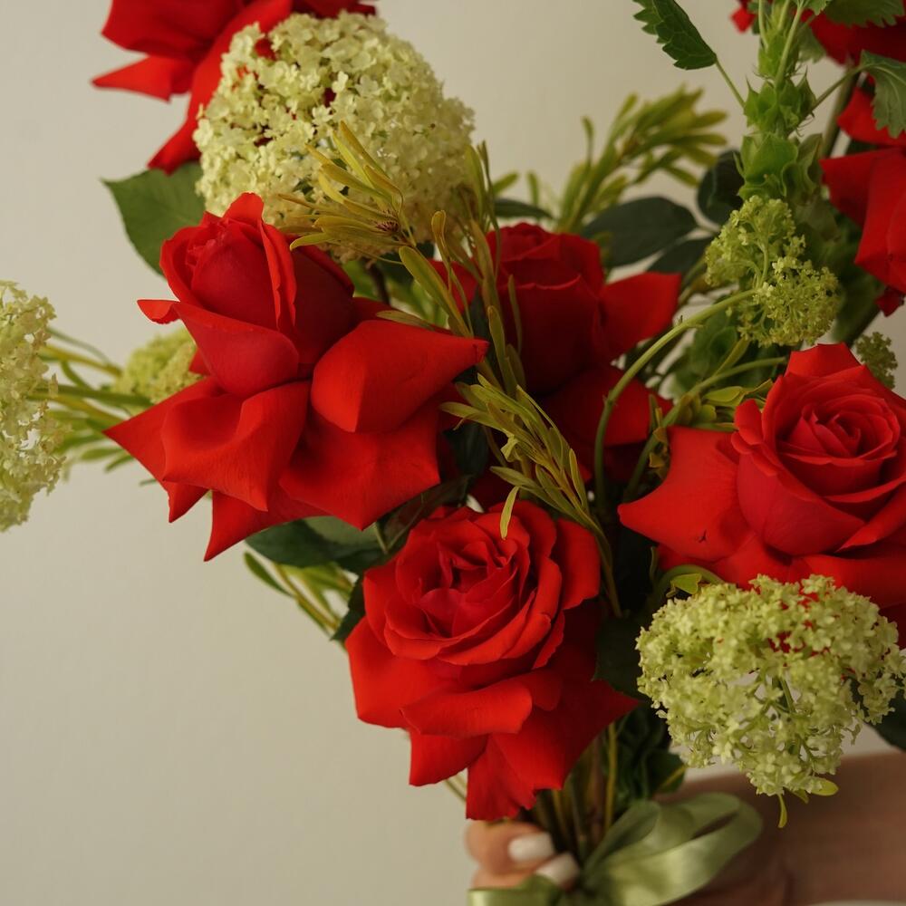 Хотите подарить что-то особенное и романтичное? Наш букет из красных роз сорта Нина, ароматного вибурнума и нежной мюлющеллы идеально подойдет для этого! Красота и изысканность этого букета не оставят равнодушной ни одну женскую душу. Это идеальный подарок для тех, кто … Показать ещёлюбит прекрасное и ценит традиции. Порадуйте своих близких и близких сердцу людей – подарите им наш удивительный букет!