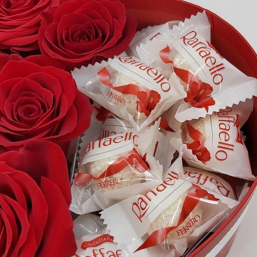 Щикарный подарок для самых любимых – красные эквадорские розы с конфетами Рафаэлло в коробке-сердце! Вместо тысячи слов…