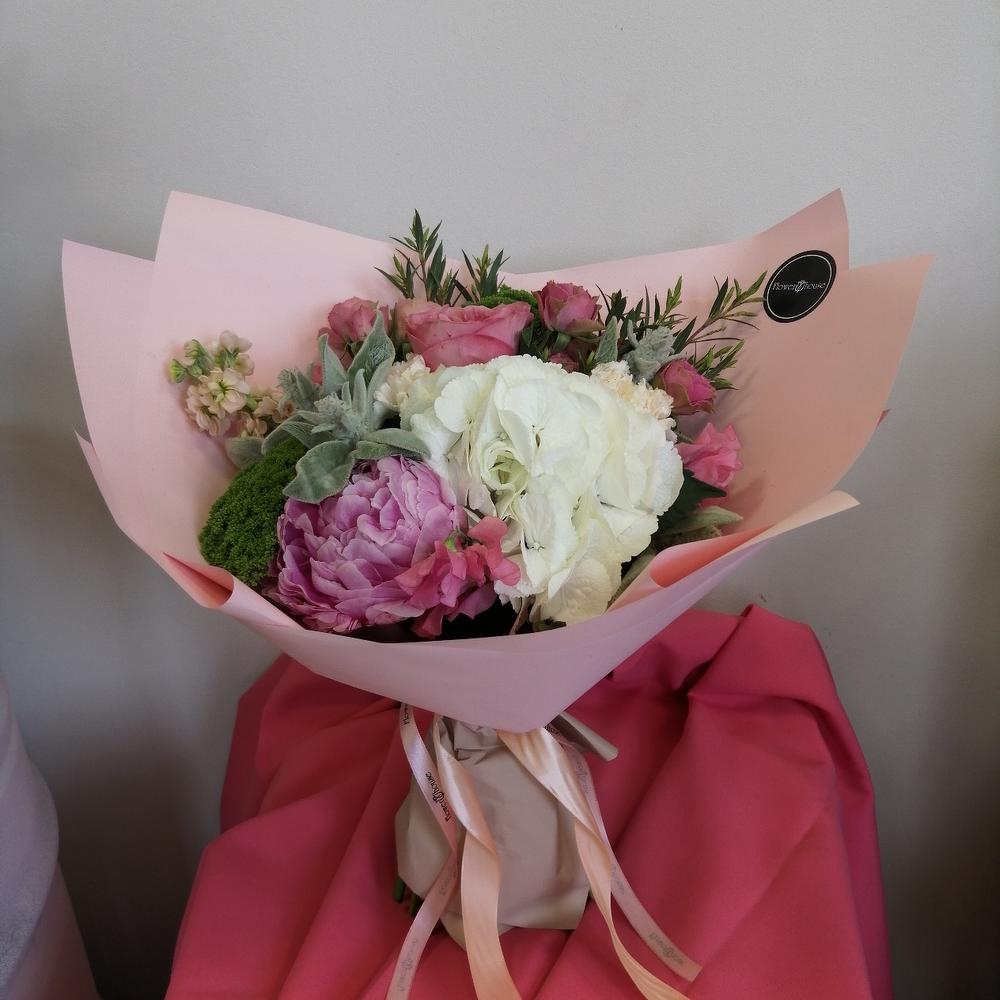Гвоздики, Кустовые розы, Лизиантусы, Пионовидные розы, Розы
