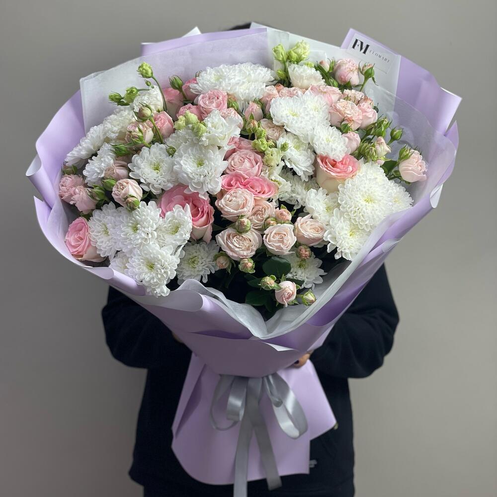 Гвоздики, Лизиантусы, Розы, Тюльпаны
