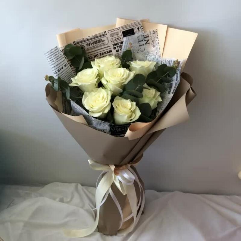 Эвкалипт – 2 шт.Роза Кенийская – 7 шт.Упаковка дизайнерская – 1 шт.Кризал (подкормка) – 1 шт.
