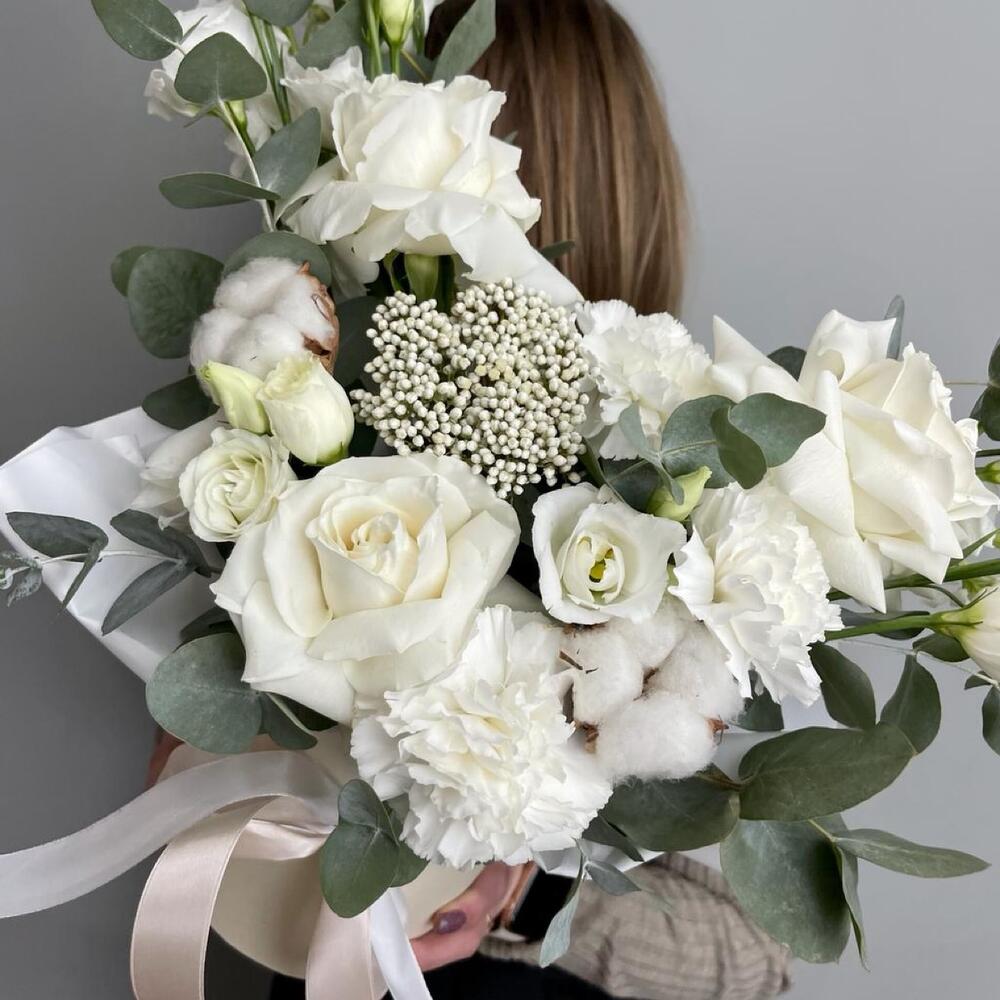 Альстромерии, Гвоздики, Кустовые розы, Лизиантусы, Розы, Хризантемы