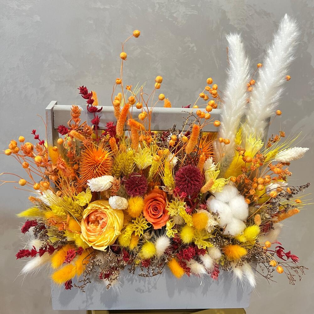 Необычный , не банальный , яркий сочный и не увядающий букет !)1-1,5 года будет радовать вас своими красками !)Композиция в красивый прозрачный упаковке , к каждой композиции в дополнение открытка , где можно написать пожелание , открытку можно выбрать при покупке написав в чат Сухоцветы и стабилизированные цветы – лучшая инвестиция в букет ,который не завянет!)