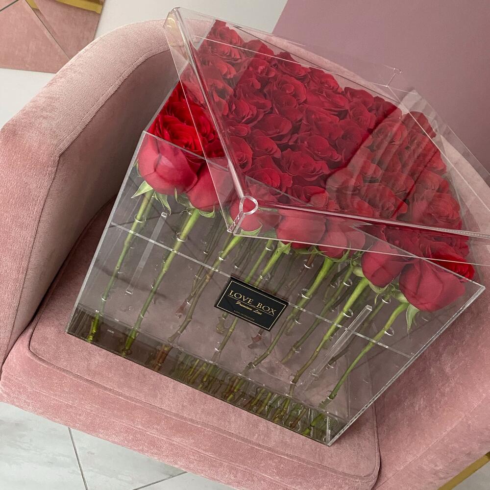Роза Эквадор – 49 шт.Стеклянный куб – 1 шт.