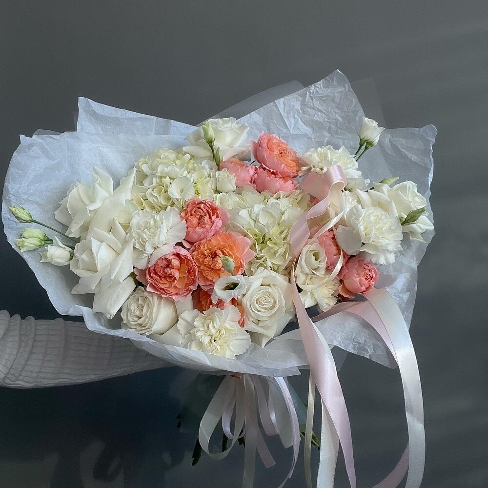 Категорий: Гвоздики, Гортензии, Лизиантусы, Пионовидные розы, Розы