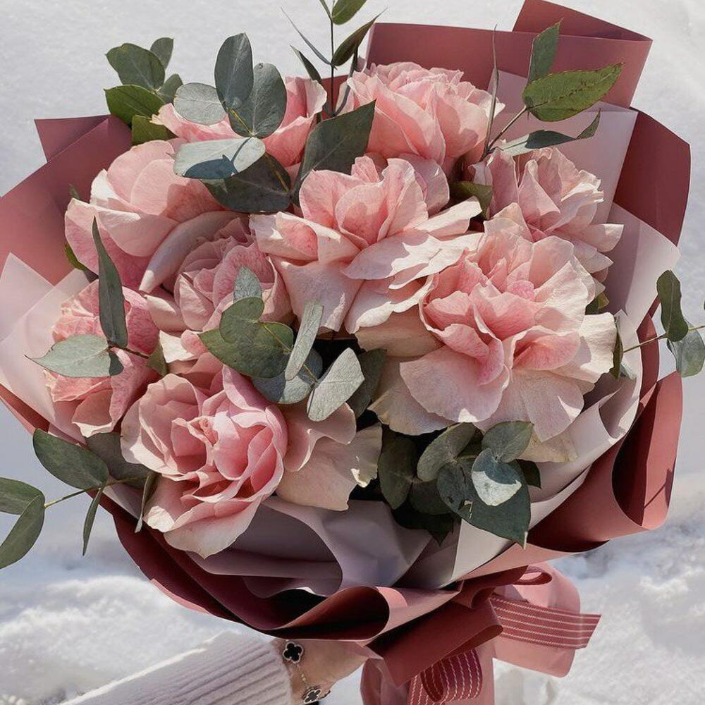 Альстромерии, Кустовые розы, Лизиантусы, Пионовидные розы, Розы, Ромашки